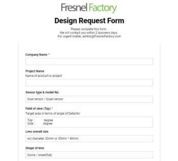 I would like to know which point you want to check. NIR Transmittance of Material Verifying the optic design of the lens For 1. We can provide a sample Fresnel lens. Even it has different Focal and size from your design. It is specially tuned for NIR wavelength and has high hardness and heat resistance. The...