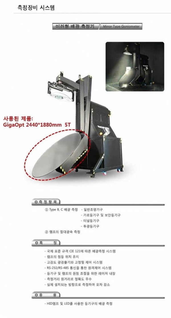 This is a photometric measurement that is mirror type, and we provided it to Pimacs Ltd.